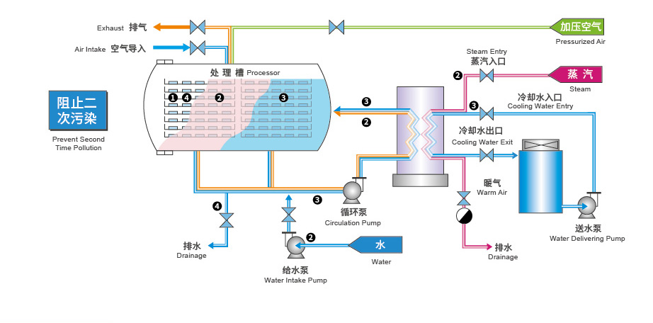 ? 少量的工藝用水快速循環(huán),快速達(dá)到預(yù)定殺菌溫度。