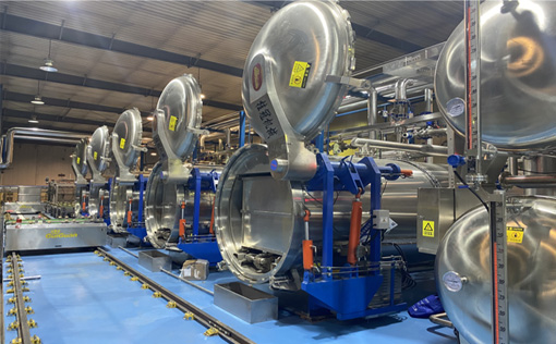 每月可生產(chǎn)殺菌設(shè)備20臺/套以上,擁有自動焊接、切割設(shè)備、折彎設(shè)備等.設(shè)備齊全,殺菌釜、裝籃機、卸籃機、 臺車、籃筐、托盤、控制箱、等等配件 的制造和組裝都在桂冠工廠完成,實現(xiàn) 整機的調(diào)試和FAT工廠驗收,能幫助設(shè)備 “準(zhǔn)時”啟動和運行得更快、更順暢。